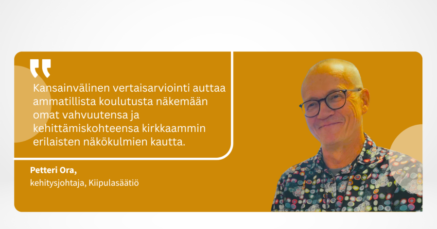 Suomessa ammatillisten oppilaitoksien välisiä vertaisarviointeja on hyödynnetty jo parinkymmenen vuoden ajan. Kansainvälinen arviointi toteutetaan samojen periaatteiden mukaisesti, mutta keskusteluja rikastuttavat erilaiset koulutukselliset lähtökohdat. Mainitussa OPH:n hankkeessa on luotu kriteerit kansainväliselle vertaisarvioinnille.