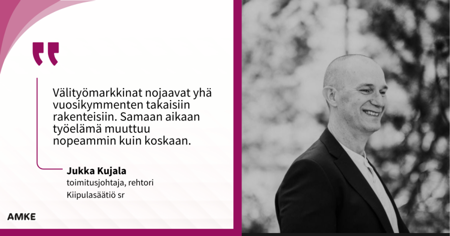 Välityömarkkinamme kohtaa lähivuosina uuden haasteen. Työvoima ikääntyy ja pitkäaikaistyöttömien keski-ikä nousee väistämättä. Välityömarkkina joutuu kattamaan perinteisesti toimintakyvyltään tuen tarpeessa olevien ohella työelämävalmiuksiltaan heikosti työllistyvien ryhmän. Lisähaasteen tuo AI, jonka hallinta ei ole monellekaan pitkäaikaistyöttömälle ykkösjuttu. Kykeneekö suomalainen koulutus-tutkinto-työnhaku -malli sijoittamaan työmarkkinoille merkittävän suuren työnhakijajoukon, kun samanaikaisesti meillä on meneillään teollinen ja taloudellinen muutos AI:n korvatessa ihmistyötä miltei jokaisella alalla? Suuri joukko työikäisistä on vailla AI-ajan työelämävalmiuksia.