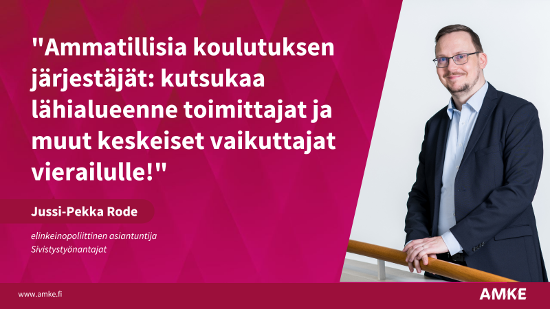 Kannustan kaikkia ammatillisia koulutuksen järjestäjiä kutsumaan lähialueenne toimittajat ja muut keskeiset vaikuttajat vierailulle. Erityisen tärkeää, näin eduskuntavaalien alla, on kutsua kylään mahdollisimman paljon ehdokkaita. On huomattavan paljon helpompaa saada eduskuntavaaliehdokas paikalle nyt, kuin sitten vuotta myöhemmin, kun henkilö istuu Arkadianmäellä päättämässä yhteisistä asioistamme.